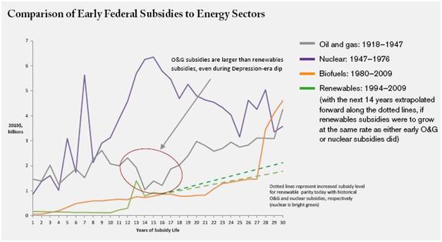 Figure 1 – “Comparison of Early Federal Subsidies to Energy Sectors” (Healey & Pfund, 2011)