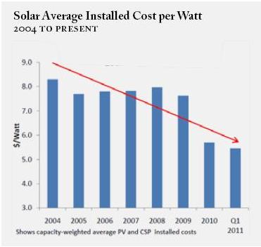 Figure 3 – “Solar Average Installed Cost per Watt” (Healey & Pfund, 2011)
